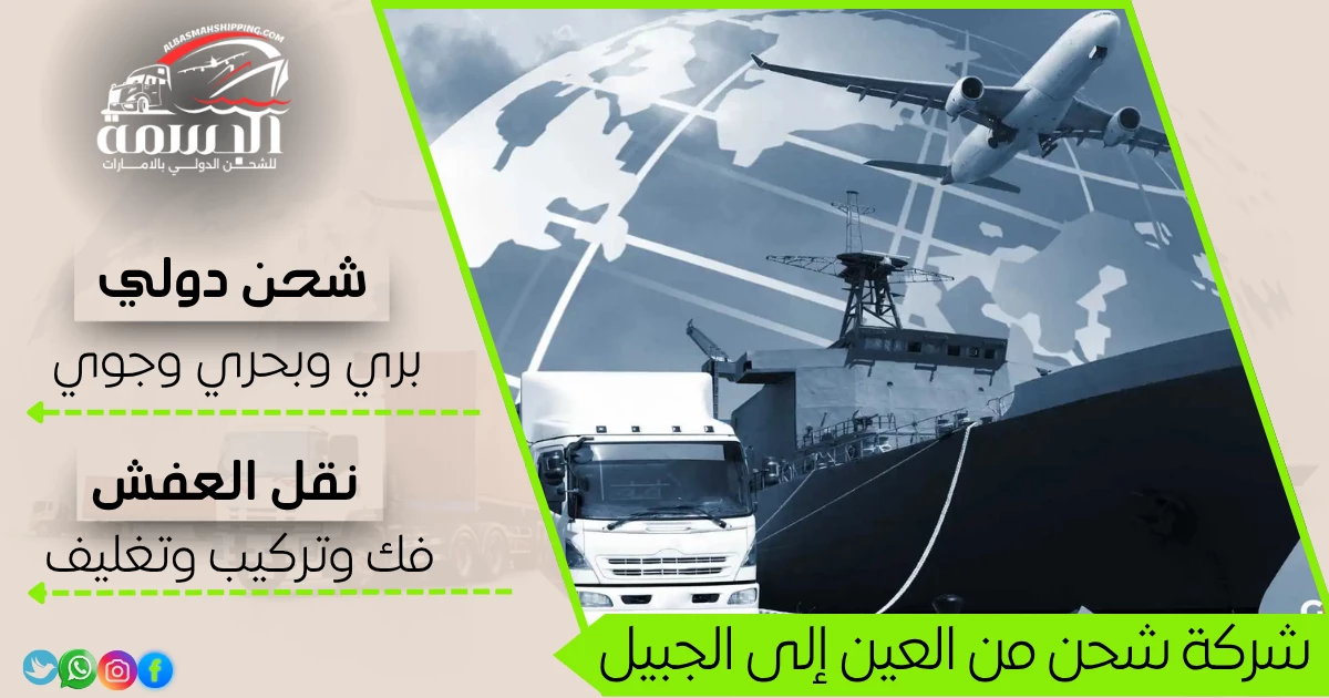 تقدم البسمه شحن بري، جوي، وبحري لنقل العفش، البضائع، والطرود من العين إلى الجبيل بأمان. 📦🚛✈️ - كم يستغرق الشحن البري من العين إلى الجبيل؟