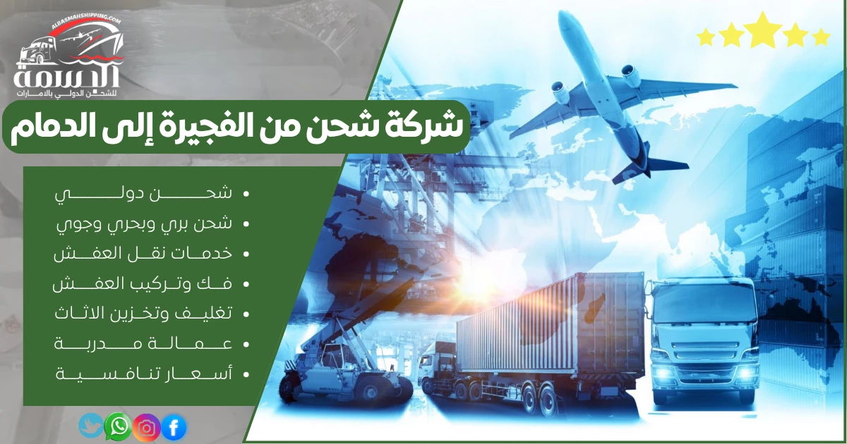 تقدم البسمه خيارات شحن بري وجوي مرنة لتلبية احتياجات العملاء من الفجيرة إلى الدمام. توفر شركة شحن من الفجيرة إلى الدمام، البسمه، خيارات شحن بري وجوي تناسب مختلف أنواع الشحنات، مع ضمان السرعة والأمان.