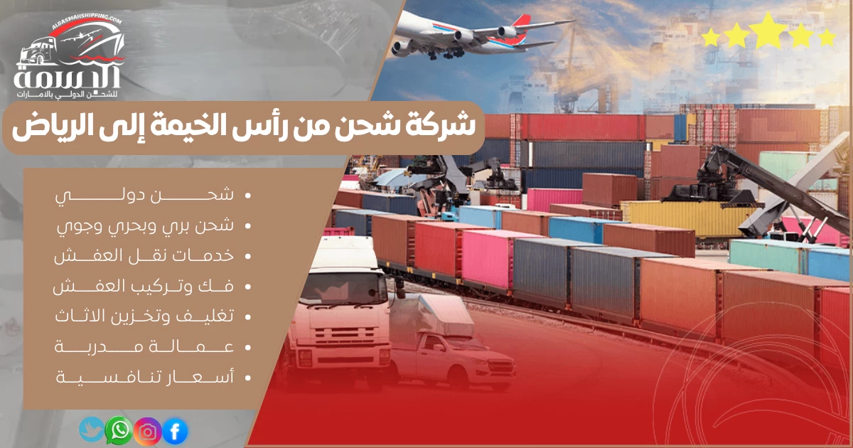 تتميز شركة شحن من رأس الخيمة إلى الرياض البسمه بخدمات شحن بري، بحري، وجوي متكاملة، مع التركيز على نقل العفش، فك وتركيب الأثاث، والتخزين الآمن بأسعار تنافسية.