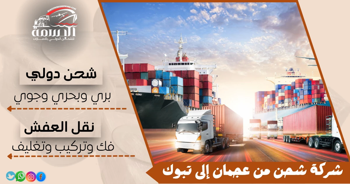 شركة شحن من عجمان إلى تبوك البسمه للشحن الدولي، تقدم خدمات شحن احترافية وشاملة لنقل العفش، الأثاث، البضائع، والطرود بأعلى معايير الجودة والأمان. تحت شعار “البسمه للشحن – نختصر المسافة من عجمان إلى تبوك”، نضمن تجربة شحن سلسة عبر النقل البري، البحري، والجوي. في التالي نستعرض خدمات البسمه مع إضافة عناصر جديدة مثل تقنيات التتبع المتقدمة، خدمات العملاء الرقمية، ومبادرات الاستدامة البيئية لتلبية احتياجاتك بكفاءة.